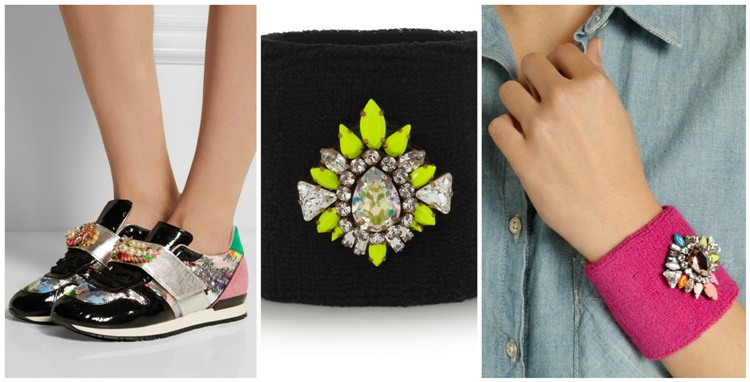 Embellished patent-leather and suede sneakers, Wimblee Swarovski crystal-embellished stretch-terry black wristband and Wimblee Swarovski crystal-embellished stretch-terry pink wristbandSo, do you think they can be a nice present? I’m coveting the pearl necklace!