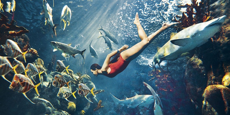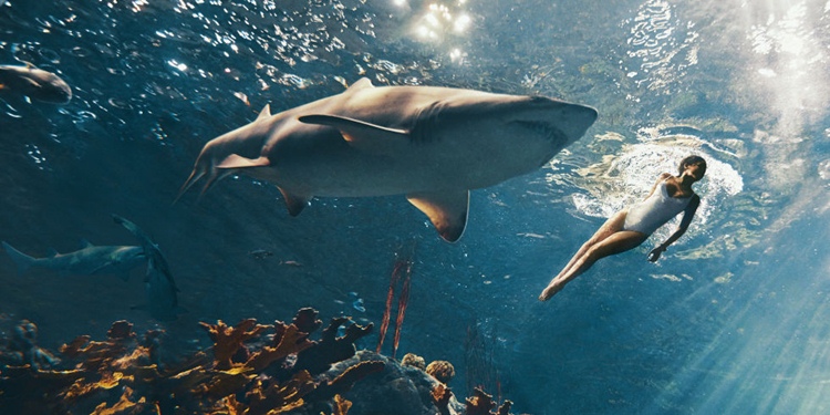 Rihanna swimming among sharks for Harper’s Bazaar