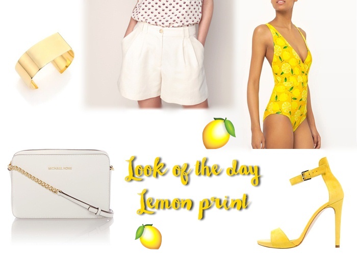 This look of the day, is dedicated not only to one season trend, but to two: the color yellow and the lemon print. They are both huge summer trends, and I actually love them so I wanted to create a look around them. I built the whole outfit around this lemon printed swimsuit which could also be worn as a bodysuit. Since it’s a very bold piece, I chose to pair it with simple oversized white shorts, a white cross body bag, gold accessories, and matching yellow heeled sandals. The combination is very summery, and it’s my recommendation for not only the week, but the whole summer season. You can trade the heels for a pair of flat sandals, and you can party at beach bars or summer clubs all night long, or even travel around the island you’ll be visiting, looking fresh and stylish. You should try it!